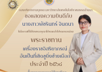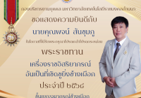 ขอแสดงความยินดีอย่างยิ่ง  ขอแสดงความยินดีกับผู้ได้รับพระราชทานเครื่องราชอิสริยาภรณ์ อันเป็นที่เชิดชูยิ่งช้างเผือก และอันมีเกียรติยศยิ่งมงกุฎไทย ชั้นต่ำกว่าสายสะพาย ป...