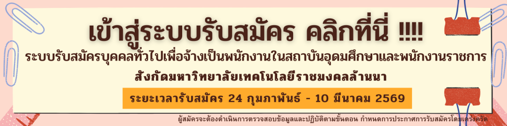 มหาวิทยาลัยเทคโนโลยีราชมงคลล้านนา ประสงค์จะรับสมัครคัดเลือกบุคคลทั่วไป